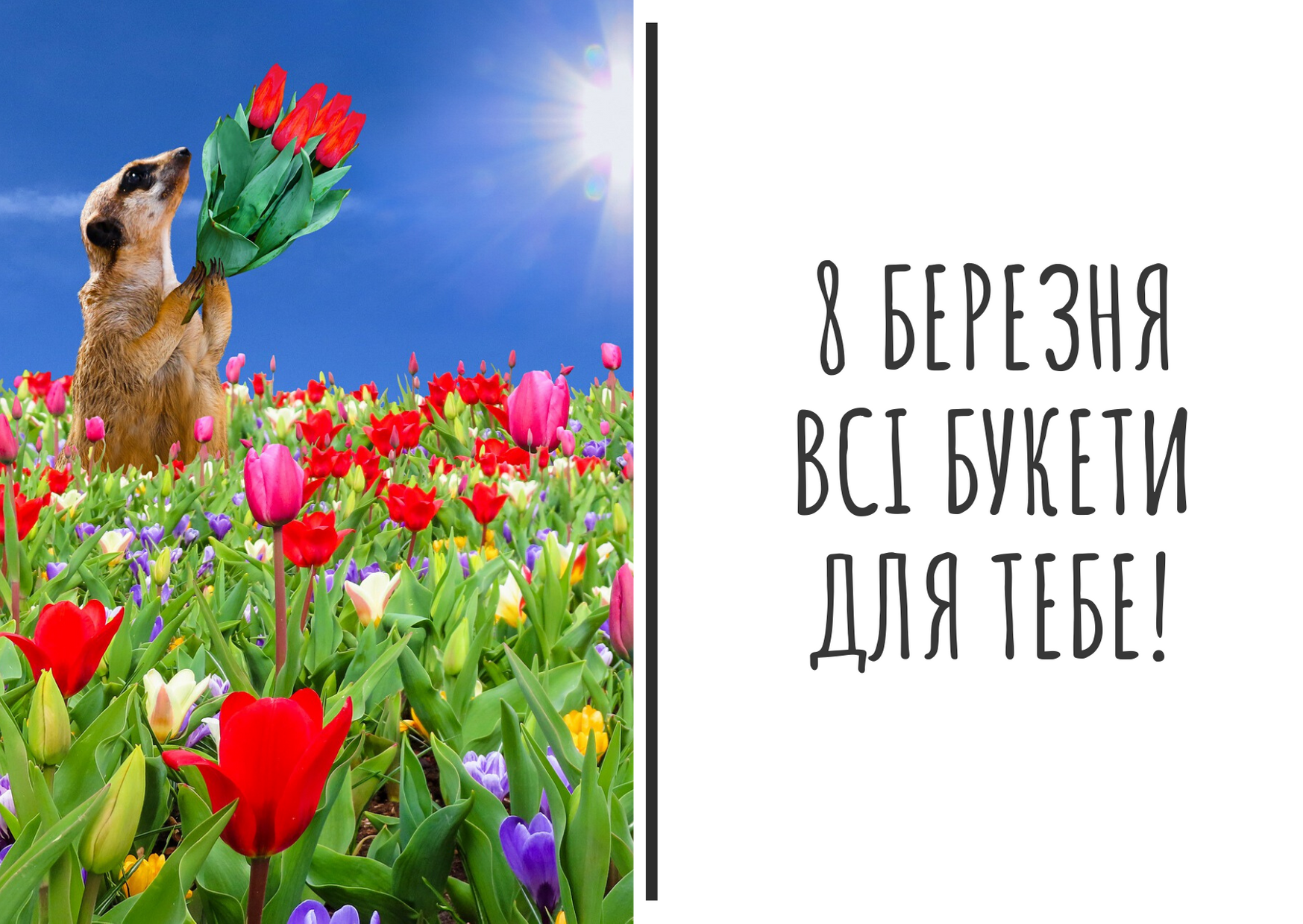“З 8 Березня! Бажаю тобі, щоб чоловіки дарували квіти так часто, як ти їх заслуговуєш, а робота була не тільки цікавою, але й легкою!”