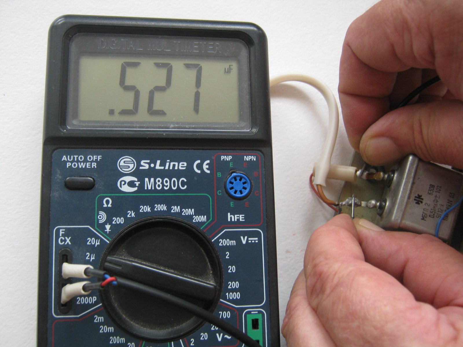 Якщо прилад спочатку показує низький опір, а потім він повільно зростає — конденсатор заряджається, отже, живий.